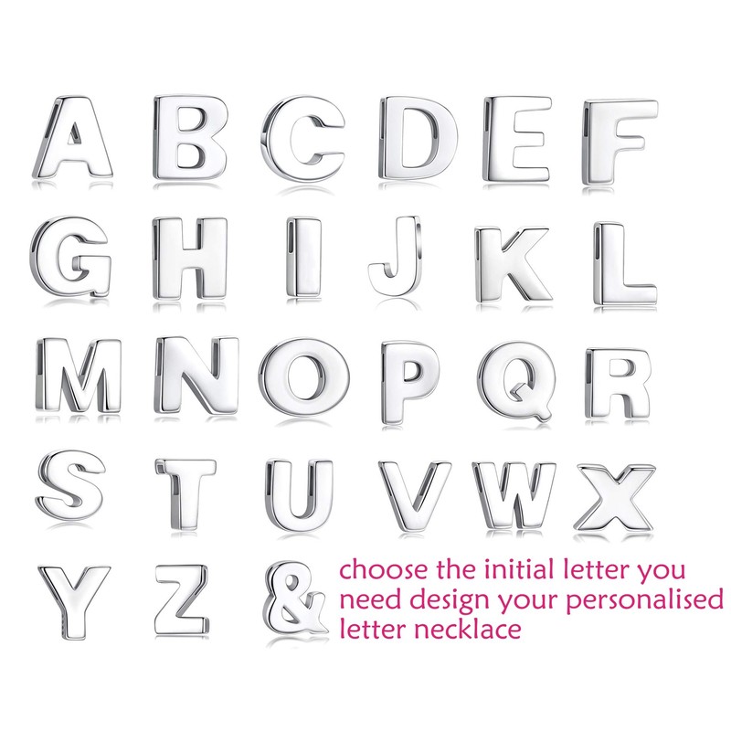 CANDYFANCY S Initial Pendant 925 Sterling Silver Letters Personalized Alphabet Pendant Fit 1mm Box Chain