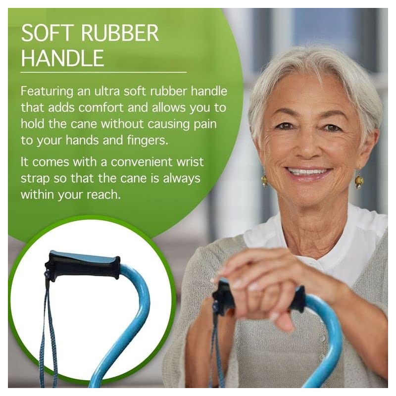 • SOFT RUBBER HANDLE. This cane features an ultra soft rubber handle that gives added comfort and that allows you to hold the cane without causing pain to your hands and fingers. It comes with a convenient wrist strap so that the cane is always within your reach.