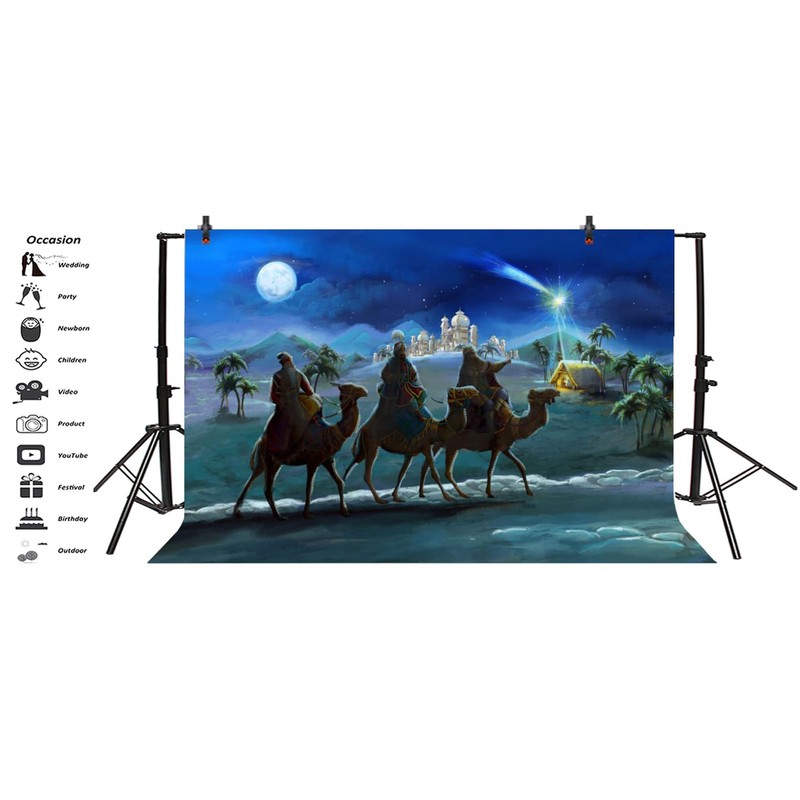 - 【Wide Range of Uses】:Starlight desert nativity Christmas backdrop religious activities background.Suitable for christian themed gatherings,Christmas party decoration,new year backdrop,church concert decor,religious activities,newborn party,children birthday party,baby shower,photo booth props and other special occasions.