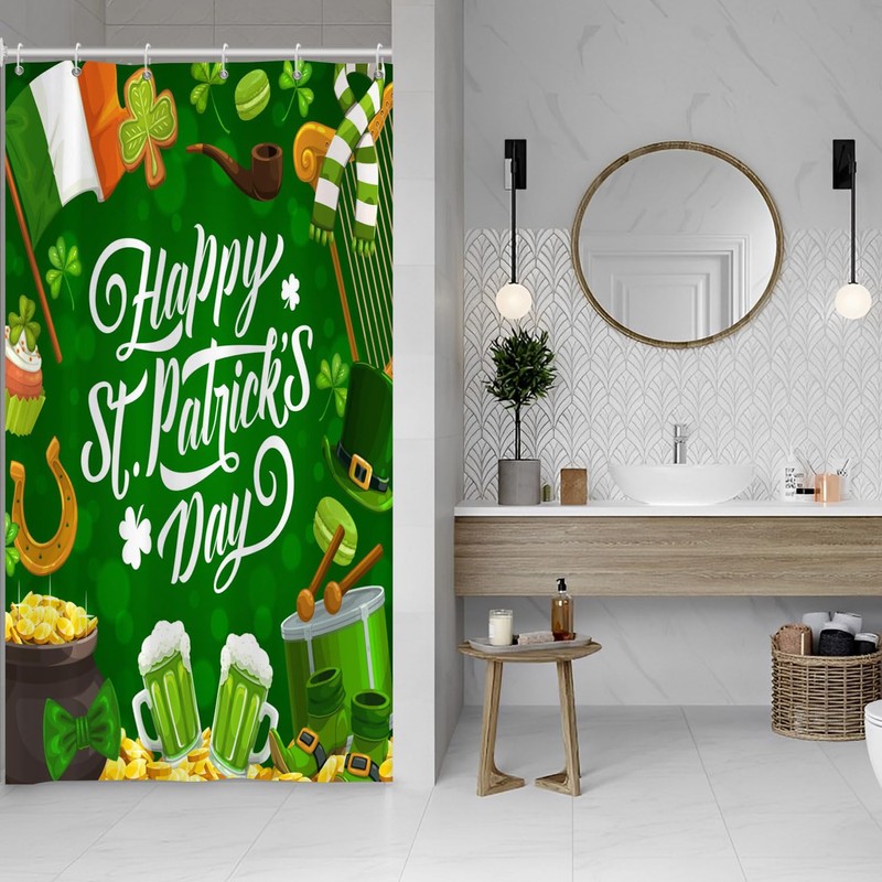 - 【Wide Range of Uses】:Ireland leprechaun gnome shower curtain lucky clover bathroom curtain.Suitable for st. Patrick's day door curtain,lucky clover wardrobe curtain,green shamrocks bathroom window,Ireland leprechaun home shower curtain,room partition curtain,car curtain and other special occasions.