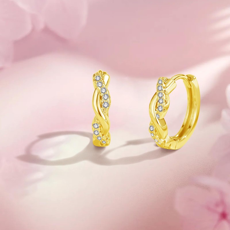 Cangall Gold Hoop Earrings for Women, 925 Sterling Silver Twisted Hoop Earrings with 5A Cubic Zircon, Lightweight Dainty CZ Small Sleeper Cartilage Huggie Ear Hoops Trendy Jewelry Gifts for Girls