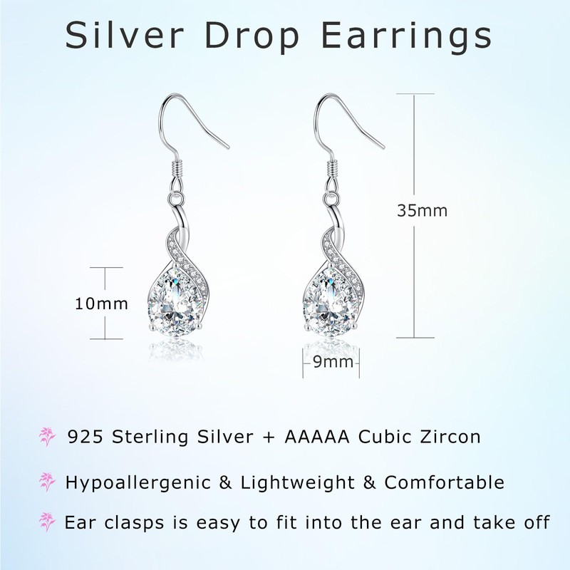 【Silver Drop Earrings Material】-- Silver Earrings for Women are made of 925 Sterling Silver & White Gold / Rose Gold / Gold plated + Teardrop Cubic Zircon.