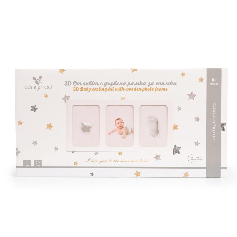 Special features: Cangaroo baby plaster cast 3D hand and foot print set, wooden photo frame:
