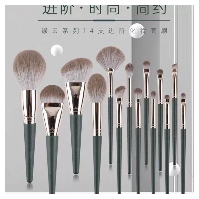 Cangzhou New Green Cloud 14-Piece Makeup Brush Set Pouch 15ea