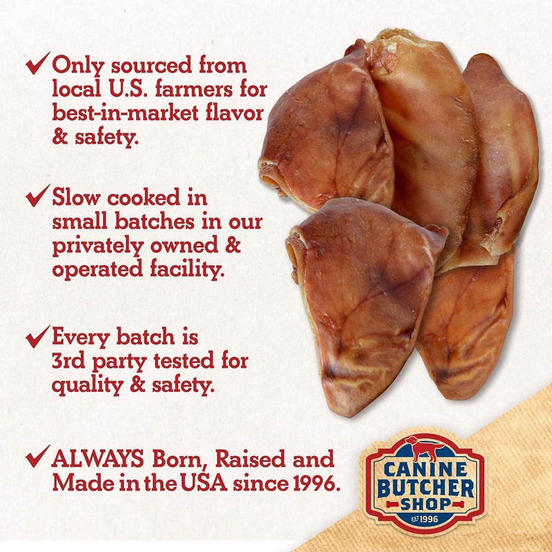 Canine Butcher Shop Always Raised & Made in USA Pig Ears for Dogs, Pack of 18 - All-Natural Digestible Dog Chew Treat