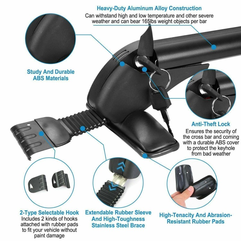 CANITU For VW Jetta GLI MK6 MK7Top Roof Rack Cross Bar 43.3" Luggage Carrier w/ Lock