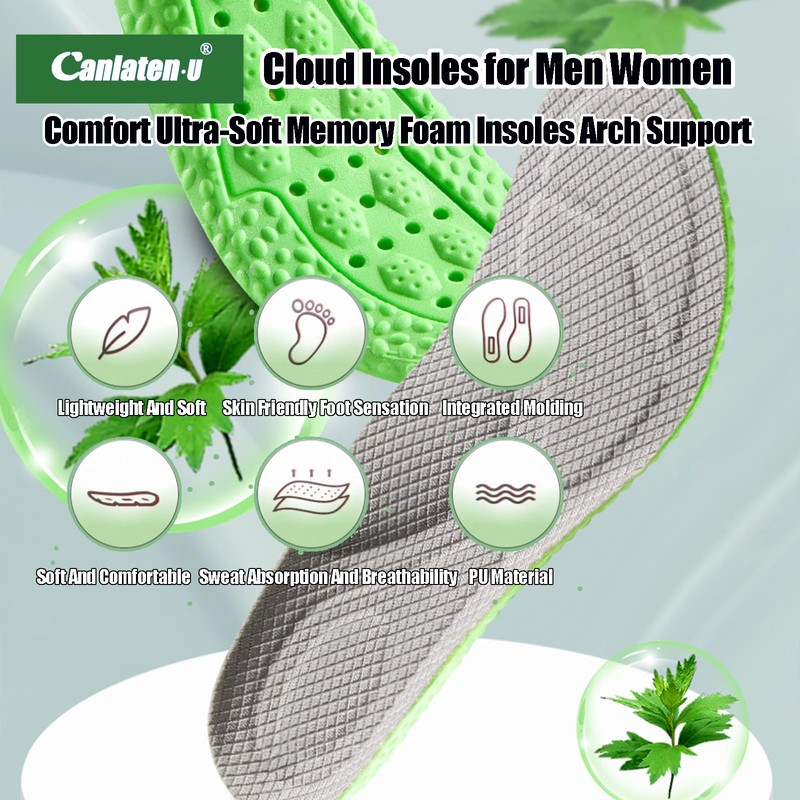 Canlaten·U Cloud Insoles for Men Women - Comfort Ultra-Soft Memory Foam Insoles Arch Support Inserts, Anti Fatigue, Shock Absorption (Gray, Men4-8/Women5-9)