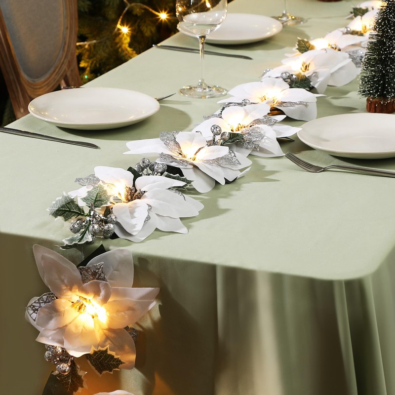 - Quality Craftsmanship: Made with quality materials, this poinsettia garland offers a realistic and elegant look, and is suitable for both daytime adornment and enchanting night-time illumination, indoor and outdoor settings to brighten your holiday gatherings