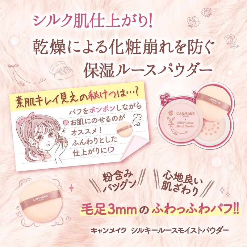 Canmake Silky Loose Moist Powder 01 Silky Beige Loose Powder Removes with Facial Cleanser Moisturizing Powder Soap Remover Unscented UV Protection 1 piece (x 1) 02 Sheer lavender