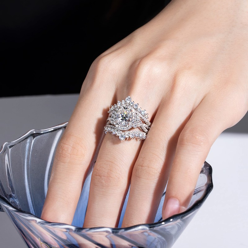 - INGENIOUS DESIGN: Shimmering 68 pieces of Moissanites 1.23 cttw glisten along the V-shape shank, creates a dazzling crown. The Captivating Moissanite Wedding Ring Enhancers includes 2 pieces, from its refined and creative design, avoid too tight or have too much space in between when stacking, further enhances your loved main rings more glamorous, making you focus of the feast, meeting, dating, prom, party, travel