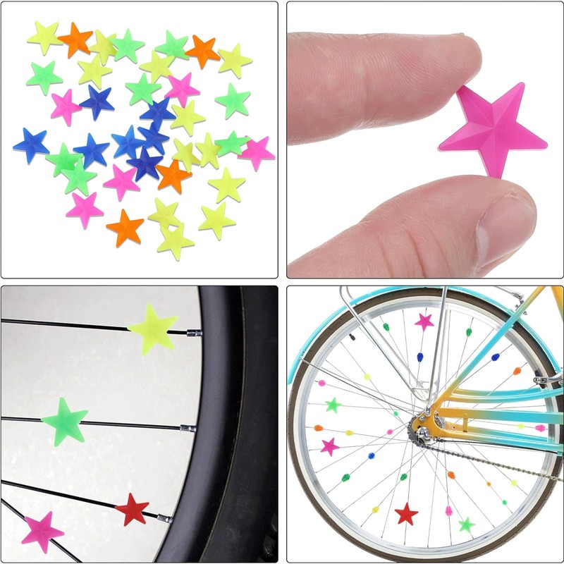 - Package contents: you will receive 36 star-shaped spoke beads, different colors, bright colors, exquisite and cute make children's bicycles easy to special and loved by children
