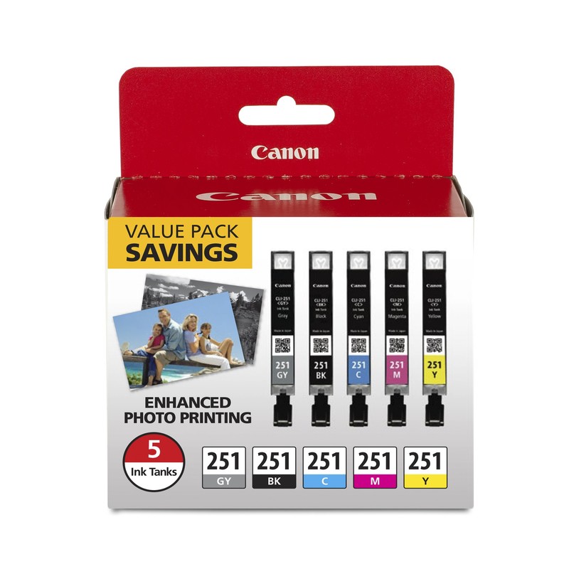 Canon CLI-251 BK/C/M/Y/GY 5 Color Value Pack & CLI-251 Black Compatible to iP7220,iP8720,iX6820,MG5420,MG5520/MG6420,MG5620/MG6620,MG6320,MG7120,MG7520,MX922/MX722 Printers