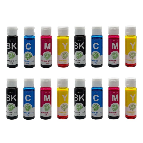Canon Compatible Ink Refill (BK/C/M/Y), BC-310/311, BC-340/341, BC-345/346, BC-360/361, BC-365, BC-366, 4 Sets of 4 Colors, 16 Bottles Total, 1.0 fl oz (30 ml) Instrument Included (Ink Filling