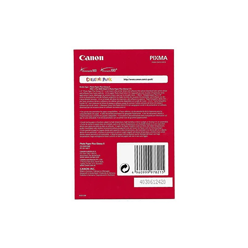 - High gloss finish – with the PP-201 Canon Plus glossy ll photo paper, you can achieve an ideal high-gloss finish for your photos