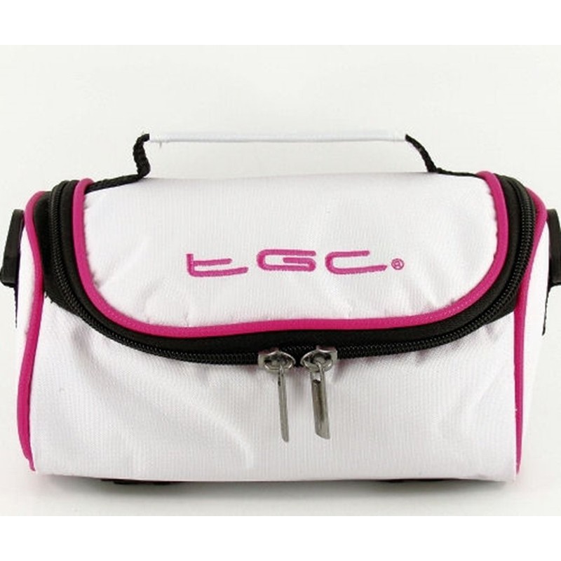 Canon PowerShot SX720 HS Camera Case Bag by TGC ® with shoulder strap and Carry Handle (Cool White With Hot Pink Trims)