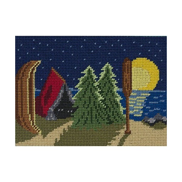 Alice Peterson needlepoint kits are made in the USA! Kit includes 100% cotton #14 mesh canvas with design printed in color, embroidery floss, needle & instructions. The use of embroidery floss gives a fine, smooth finish to your project. Camp design size: 7" x 5"