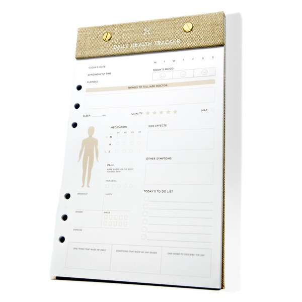 - Tracking Includes: Daily Mood, Things to Tell/Ask Doctor, Pain Tracker, Medication Tracker, Medication Side Effects, Symptoms Tracker, Meals/Exercise/Sleep Tracker, To-Do List, Positive Encouragement