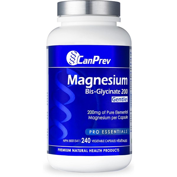 CanPrev - Pure Magnesium Bis-Glycinate 200mg (Gentle) | 240 v-caps | Elemental Chelated Complex Supplement | Magnesium bis-glycinate blend - Glycine, Magnesium Oxide, Magnesium bis-glycinate chelate | Vegan