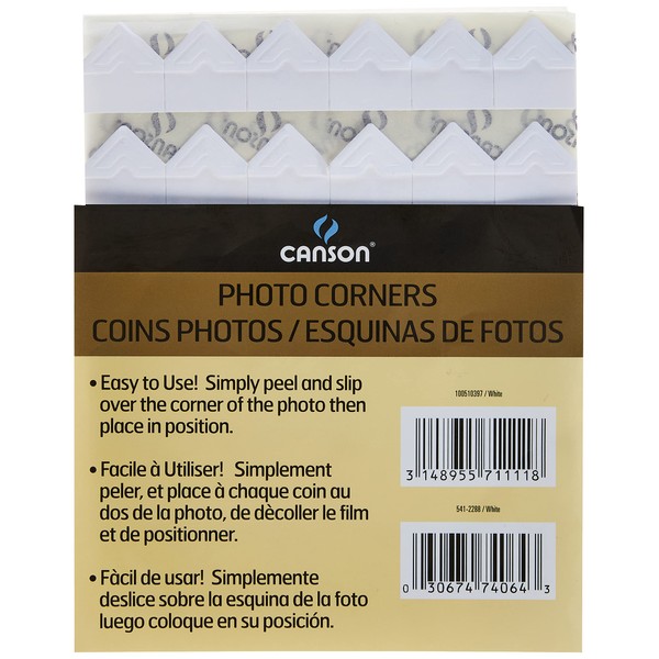 Canson Self Adhesive Photo Corners, Peel-Off Archival Quality, White, 252-Pack