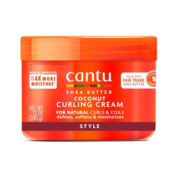 Creamy, weightless, coconutty moisture is here to leave your curls softer than ever. Cantu Shea Butter for Natural Hair Coconut Curling Cream 12 oz lengthens, defines, and softens curls to reach their fullest, healthiest potential. Our Award-Winning formula balances the vital moisture of pure shea butter with a lightweight texture to be the perfect conditioning formula for Type 3 curls and Type 4 coils. Made with no mineral oil, sulfates, parabens, silicones, phthalates, gluten, paraffin or propylene this is the perfect addition to your curl-care routine. Quick tip: use to quickly re-moisturize dry ends for a rejuvenated look before going out. Since the beginning, you’ve pushed us to advance skin and hair science to honor your locs, your curls, your waves, your braids, your natural. At Cantu, we support your journey with care and we celebrate all the styles you rock!