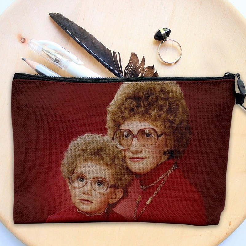 Canvas Bag - Photos Vintage Car Humour Black and White Retro - Linen Look Cosmetic Bag - Toiletry Bag - Purse, sweater red, Cosmetic bag