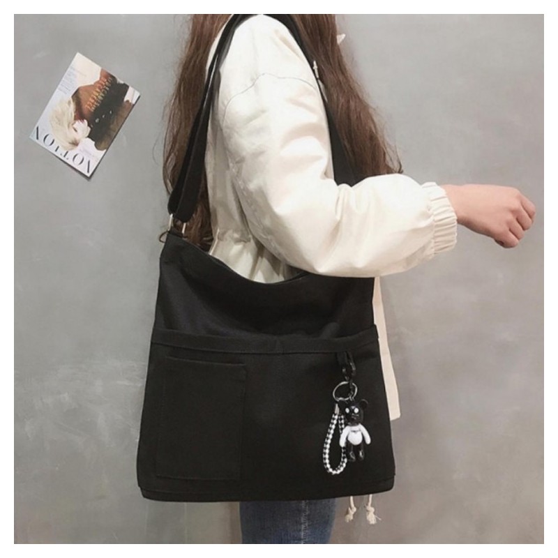 Canvas Crossbody Bag Simple Daily Pocket light black 10ea