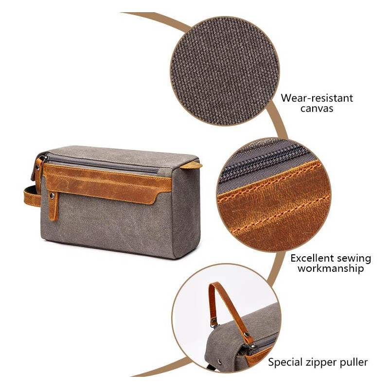 - PREMIUM DESIGN: Immerse yourself in luxury with our khaki mini canvas and leather zipper toiletry pouch, a groomsmen gift that exudes sophistication.