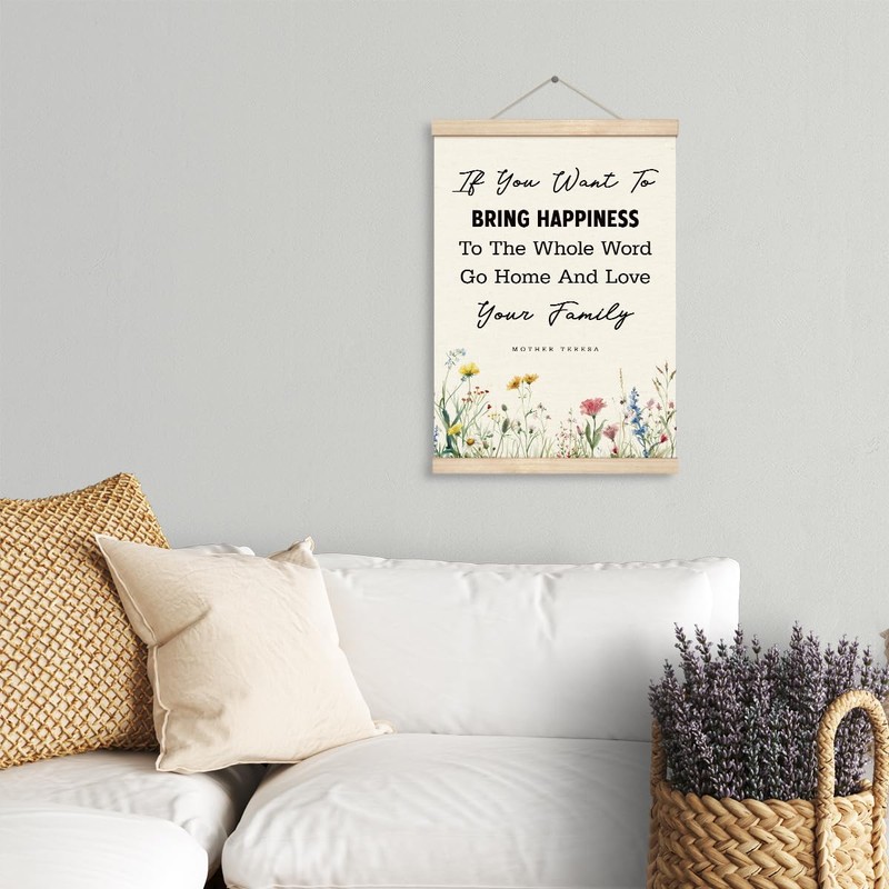 Canvas Hanging Flag Banner Wall Decor - If You Want To Bring Happiness To The World Go Home And Love Your Family - Motivational Quote Art, Gifts for Him, Her, Farmhouse Decor, Housewarming Gift