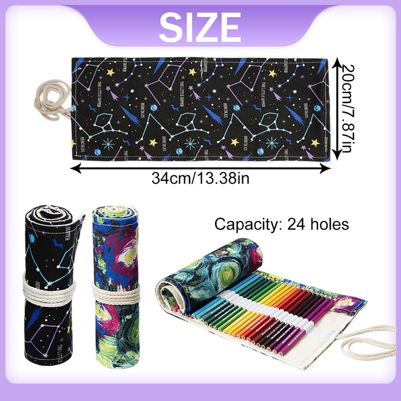 Canvas Pencil Wrap, 2 Pieces Pencil Roll Case, 24 Holes Packaging Holder, Pencil Wrap Box, Pencil Holder, Constellation Pattern Pencil Wrap, Pens Pencil Case Roll, for Artists