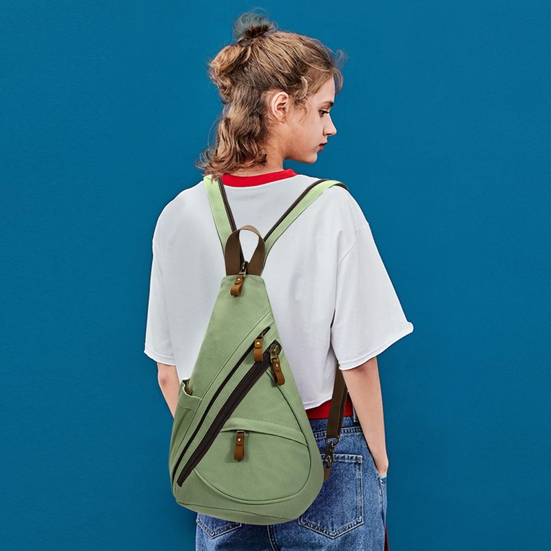 Canvas Sling Bag - Small Crossbody Backpack Shoulder Casual Daypack Rucksack for Men Women