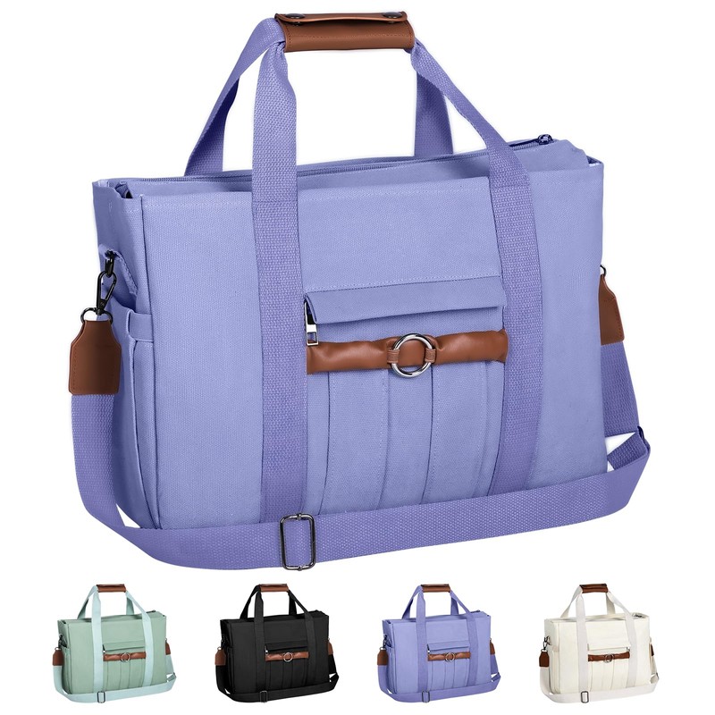 Canvas Tote Bag for Women with Zipper and Compartments Large Canvas Crossbody Bags with Pockets Top Handle Shoulder Handbags Mommy Handbags Satchel Bags for Women (Purple)