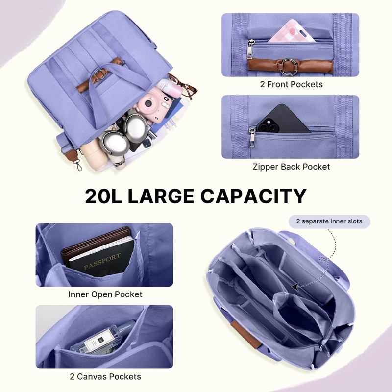 - 【Sturdy and Large Capacity】Travel tote bag size: 14.9"L*5.5"W*10.6"H, with 15L large capacity, can accommodate all daily travel items, such as 13.5" ipad, books. It is the excellent companion for school, work, and daily travel