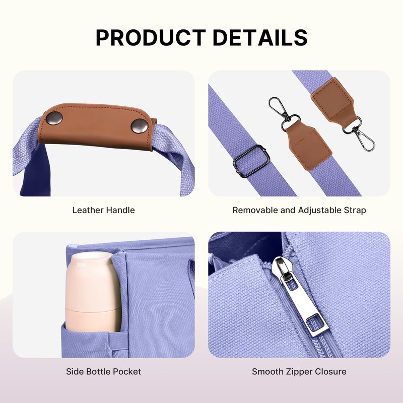 Canvas Tote Bag for Women with Zipper and Compartments Large Canvas Crossbody Bags with Pockets Top Handle Shoulder Handbags Mommy Handbags Satchel Bags for Women (Purple)