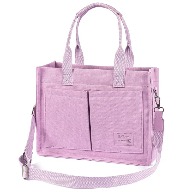 Canvas Tote Bagfor Women, Large Laptop Travel Tote Handbag Totes with Crossbody Shoulder Teachers Reusable Grocery Bags - Purple