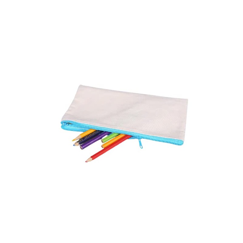 Canvas Zipper Bags, Cosmetic Bag, Makeup Pouches with Zip, Plain Pencil Pouch, Travel Toiletry Bag for Women & Girls, DIY Craft, Makeup Blank Bags (BlueZip), White