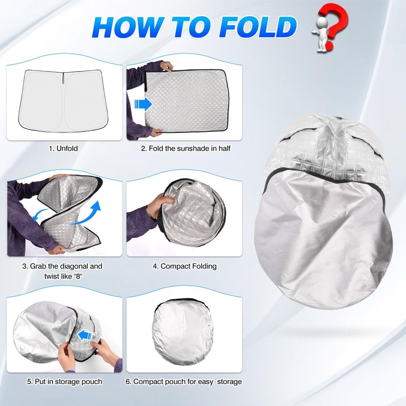 Our automotive front window sunshade is made of 6-layer heat shield fabric that effectively protects your car from sun heat and harmful UV rays.