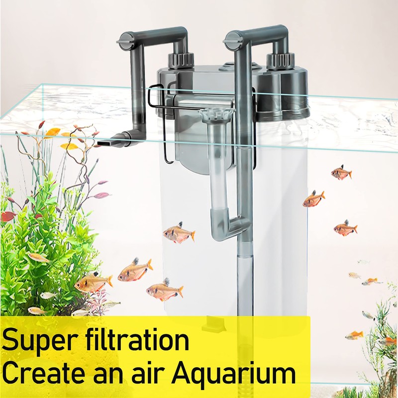 - 🐟3 IN 1 MULTI-FUNCTION FILTER: Aquarium filter has the function for filtration, oxygen aeration and surface skimmer, can be used for water circulation, waterfall type, the water flow can be adjusted according to the needs of the fish tank