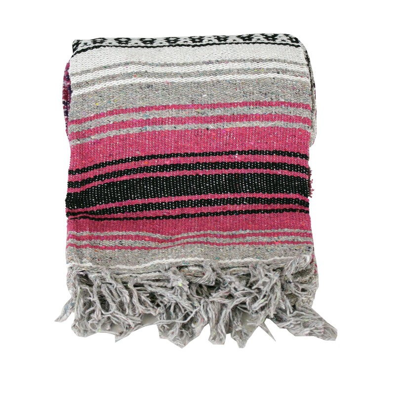 This high quality falsa blanket is perfect for yoga or just curling up on the sofa on a winter night. Made of soft woven acrylic treated cotton. It is machine washable and measures 72" x 48". Makes a great gift! PLEASE NOTE THAT DUE TO DYE LOTS AND AVAILABLE THREAD, YOUR BLANKET MAY HAVE A COLOR VARIATION FROM THE BLANKET THAT IS PICTURED. WE MAKE EVERY EFFORT TO INSURE THAT THE COLOR IS CLOSE, BUT IT MAY VARY A LITTLE. EXAMPLE: YOUR BLANKET MIGHT BE A LIGHTER SHADE OF PINK OR A DARK SHADE OF BLUE. EITHER WAY, ALL OF OUR BLANKETS ARE HIGH QUALITY AND A GREAT PRICE AND WE HOPE YOU ENJOY THEM!
