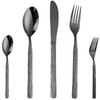 - 【Unique design】:Cutlery set black service for 8 is designed with stone pattern, which is classic and unique. Ergonomic handles,nice balance, proper weight and length to make this black utensils set hold comfortably. Fashion and classic style to fit any kitchen tableware, elevates your dining experience.