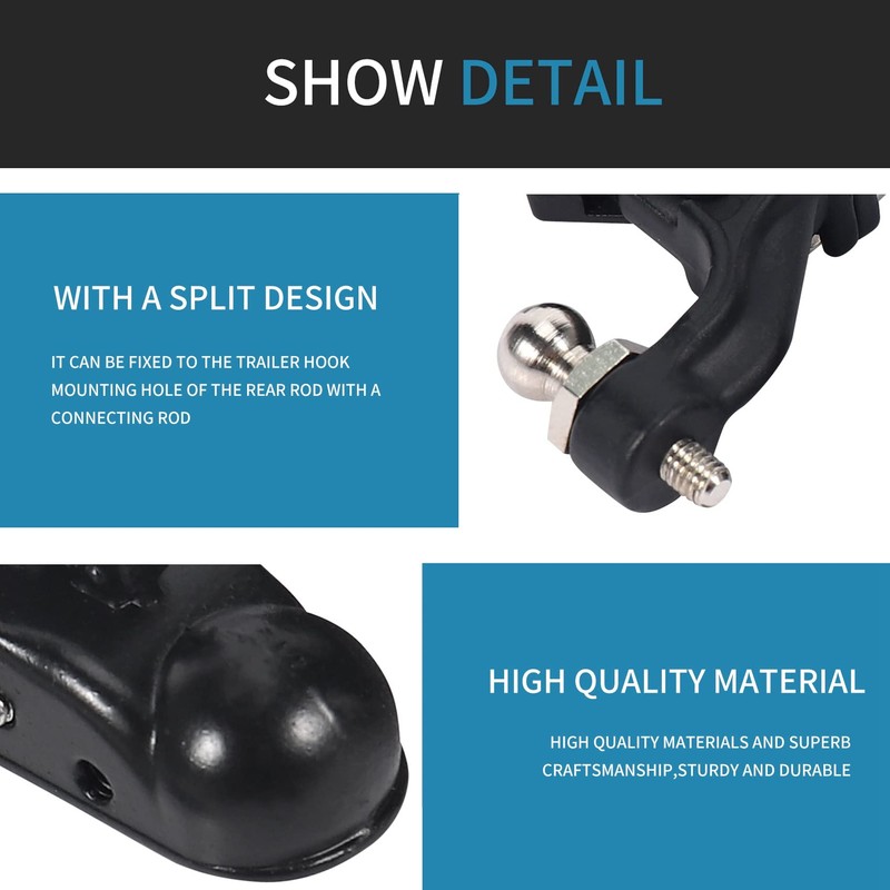 - With a split design, it can be fixed to the trailer hook mounting hole of the rear rod with a connecting rod.