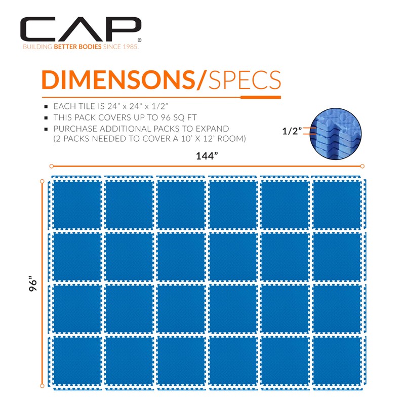 CAP Barbell 1/2-Inch Interlocking EVA Foam Exercise Puzzle Mats - 4 Pack | 24" x 24" x 1/2" | Diamond Pattern - Blue