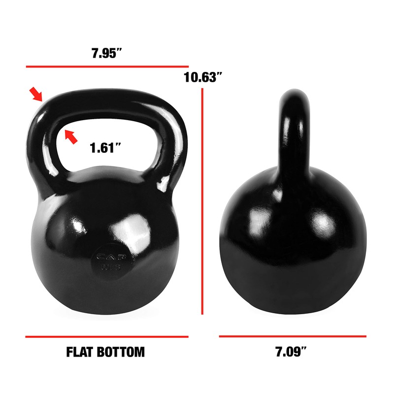- FEATURES – Generous wide opening handle ensures a comfortable, secure grip with one hand or two. The flat bottom allows for easy, safe storage and the ability to be used in specific flat bottom kettlebell exercises such as renegade rows and handstands.
