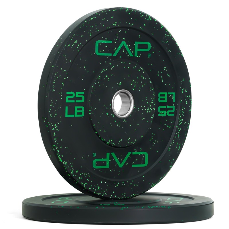 CAP Barbell Economy - Speckled Olympic Bumper Plate Set with Green Logo, Black, 25 lb Pair