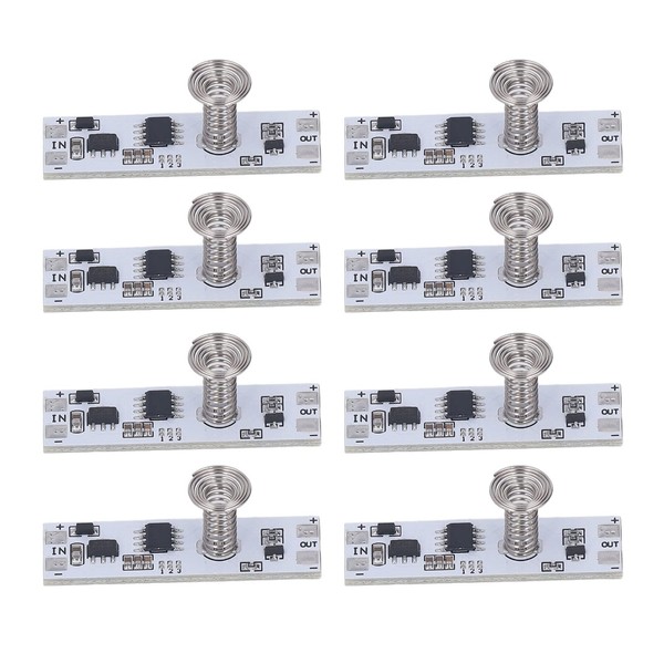 - Integrated Circuit Design The 8-piece capacitive touch dimmer switch module contains an advanced integrated circuit that allows a responsive and intuitive human-machine touch interface. This design ensures seamless interaction with the dimmer switch, allowing users to effortlessly control the brightness of LED lights. The advanced electronics behind it The module offers stable performance while maintaining ease of use,