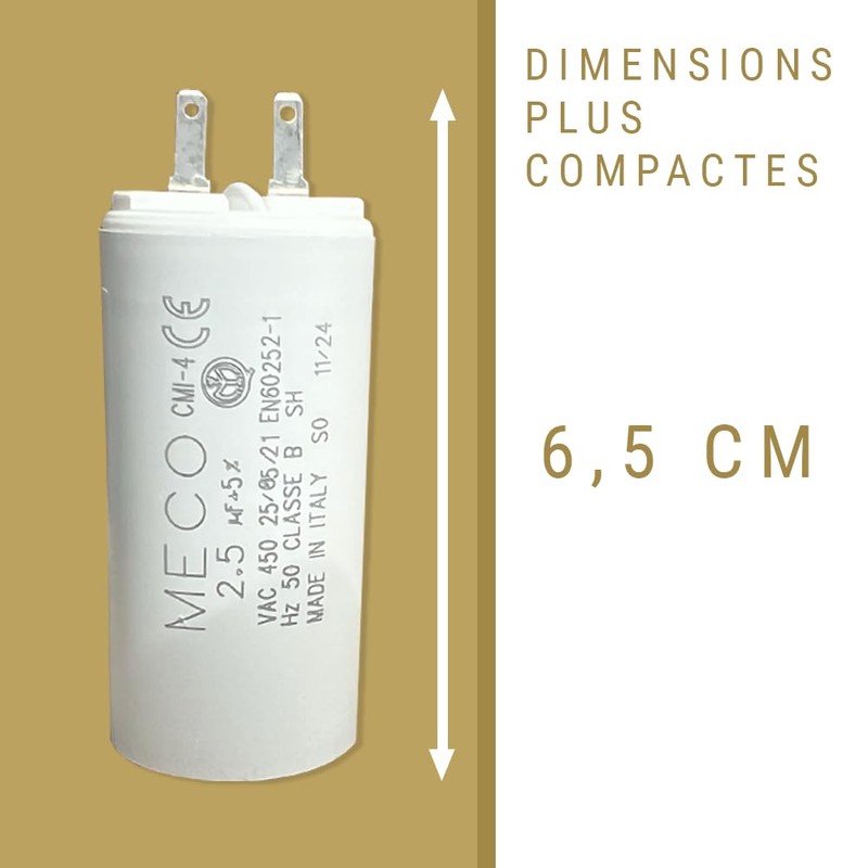 - Guaranteed cost savings on your repairs. Instead of replacing a whole roller shutter motor that can cost several hundred euros, opt for this set of 2 capacitors with 2.5 µF at a significantly lower price. By replacing only the faulty capacitor, you will extend the life of your motor and save significant savings on the maintenance of your system.