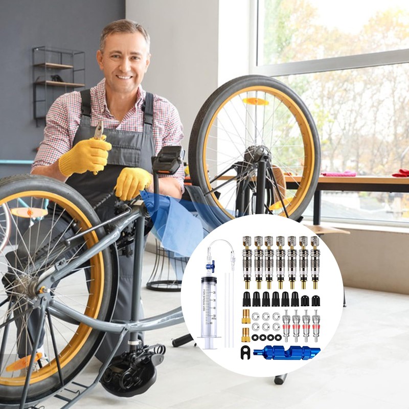 Capacity tubeless syringe 60 ml, 33 pieces valve key French valve and tool valve adapter bicycle tyres for MTB road bike tubeless tyre ust emergency accessories