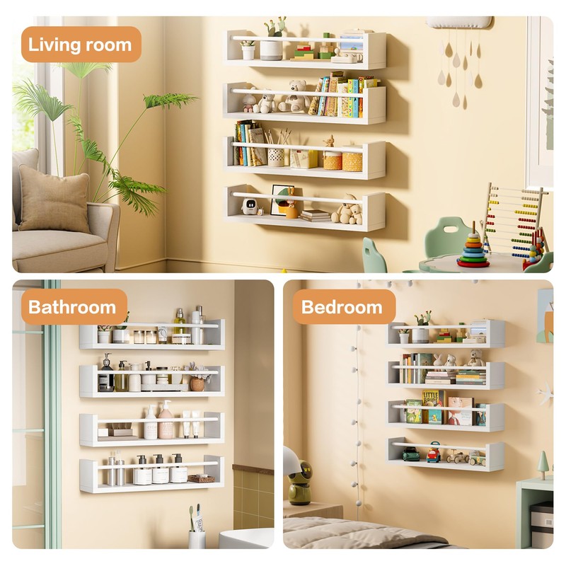 - 【Kid-Friendly & Versatile】Smooth rounded edges and non-toxic white finish ensure safety. Use as nursery bookshelves for storybooks, display shelves for stuffed animals, or floating shelves in bathrooms/kitchens. Adapts to any room’s decor effortlessly!