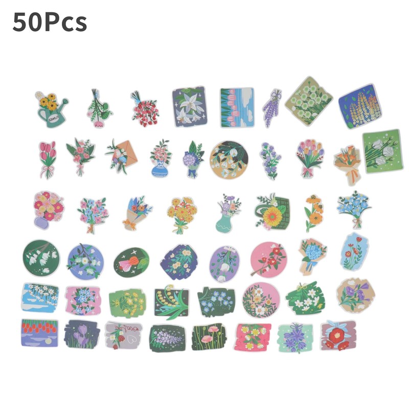 CAPASTEC Pack of 50 Flower Stickers Waterproof Scrapbook Aesthetic Stickers Water Bottle Diary Stickers for Skateboard Guitar Computer Suitcase 5.5-8.5 cm