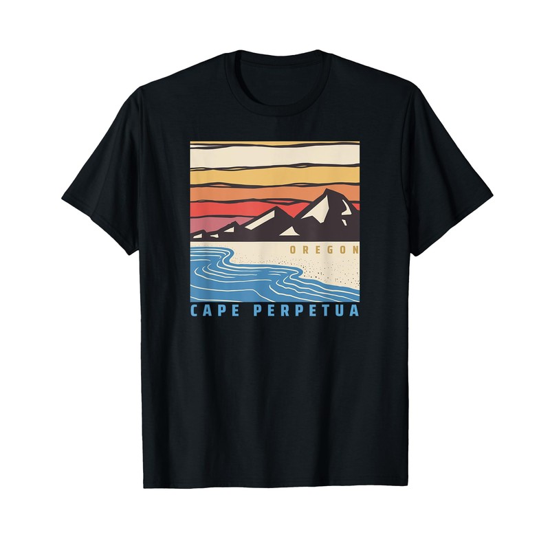 - Retro sunset design. Mountains meet the water. The lookout has a famous view.