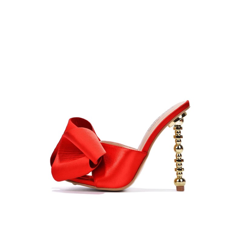 Cape Robbin Salsa Red Sexy High Heels Ribbon Open Toe Gold Sculptural Oval Pumps (RED, 8.5)